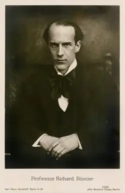 Richard Rössler, also Roessler or Rößler (14 November 1880 – 23 June 1962) was a Baltic German pianist, organist, composer and music educator (academic teacher). In 1910, he married the pianist Dora Charlotte Mayer (1887–1951), a Württemberg pastor's daughter who had studied in Berlin with Ernst von Dohnányi and Max Bruch. The couple had three children.