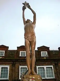 Dover War Memorial (1924), youth holding aloft a burning cross against a bright blue sky