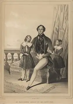 Richard Risley Carlisle was born in Burlington County, New Jersey in 1814.[1] On October 15, 1833, he married Rebecca C. Willits of Philadelphia, though her father sued him a year later for unknown reasons.[2] In 1835, he offered $2,000 to purchase 160 acres from Lazarus Bourissa, a Potowatami, to establish what is now New Carlisle, Indiana.[1] His first noted performance as a circus performer was in 1841; he came to be known professionally under the name "Professor Risley".[3] In January 1846 while on tour in Europe, Carlisle appeared before Queen Victoria and Prince Albert at the Theatre Royal, Drury Lane.[4]
