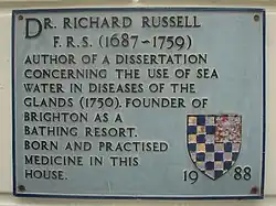 - ^ Jennifer Drury (2006). "Dr Richard Russell's house was in the Old Steine". My Brighton and Hove. Retrieved 8 December 2009. Page added 27 August 2006.