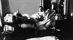 Sorge lived in a house in a respectable neighborhood in Tokyo, where he was noted mostly for heavy drinking and his reckless way of riding his motorcycle.[15] In the summer of 1936, a Japanese woman, Hanako Ishii, a waitress at a bar frequented by Sorge, moved into Sorge's house to become his common-law wife.[15] Of all of Sorge's various relationships with women, his most durable and lasting one was with Ishii. She tried to curb Sorge's heavy drinking and his habit of riding his motorcycle in a way that everyone viewed as almost suicidal.[33] An American reporter who knew Sorge later wrote that he "created the impression of being a playboy, almost a wastrel, the very antithesis of a keen and dangerous spy".[15]