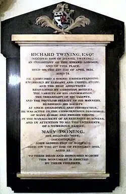 Richard Twining (1749–1824) was an English merchant, a director of the East India Company, and the head of Twinings the tea merchants in the Strand, London.