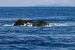 The limestone pinnacle rises from the sea floor of about 30 to 35 m (98 to 115 ft)[1][2] above the surface at low tide. The horseshoe-shaped reef is known for its purple corals as well as diverse marine life ranging from small fish and harlequin shrimp to large pelagics like whale shark and manta ray.[3][4][2]