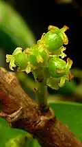 - ^ Wurdack, Kenneth J.; Petra Hoffmann; Rosabelle Samuel; Anette de Bruijn; Michelle van der Bank; Mark W. Chase (2004). "Molecular phylogenetic analysis of Phyllanthaceae (Phyllanthoideae pro parte, Euphorbiaceae sensu lato) using plastid RBCL DNA sequences". American Journal of Botany. 91 (11): 1882–1900. doi:10.3732/ajb.91.11.1882. PMID 21652335.