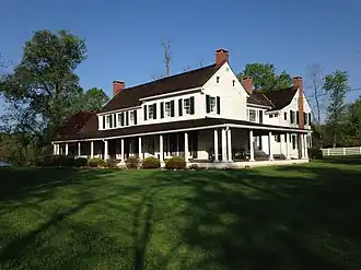 Richland Farm is a historic home and farm complex located at Clarksville, Howard County, Maryland, United States. The main house is a log and frame house, the earliest section of which is presumed to date from 1719. The main block comprises three sections, with a large addition on the rear added in 1920. It features a one-story shed-roofed wrap-around porch supported by 22 Doric order columns. Also on the property are the Overseer's/Superintendent's House, Gardener's Cottage, wagon shed, tractor shed and smokehouse with board-and-batten siding, a bank barn, a stone spring house and “Barrack.”[2]