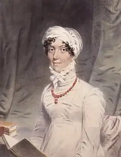 Richmal was born in Manchester on 7 March 1769 and baptised on 31 March.[1] She was one of the seven children of James Mangnall of Hollinhurst, Lancashire, and London, and Richmal, daughter of John Kay of Manchester to survive infancy. One brother, James, became a London solicitor, another died in the East Indies in 1801. Her parents died about 1781, when she was adopted by an uncle, also John Kay, a Manchester solicitor.[2]