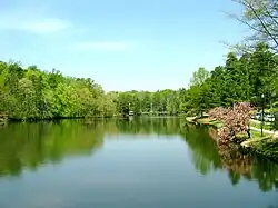 The institution has, with few exceptions, remained true to the original architectural plans for the campus—red brick buildings in a collegiate gothic style set around shared open lawns. Many of the original buildings, including Jeter Hall and North Court, both residence halls, and Ryland Hall, the original administration building and library for Richmond College, were designed by Ralph Adams Cram in 1910. Cram, a noted institutional architect, also designed buildings for Princeton, Cornell, Rice, and Williams, among other universities. Warren H. Manning, a former apprentice to Frederick Law Olmsted, designed the original landscape plan. The overall effect of the gothic architecture set amid a landscape of pines, rolling hills, and Westhampton Lake, is intimate and tranquil. In 2000 and again in 2021, the campus was recognized by The Princeton Review as the most beautiful in the United States.[54]