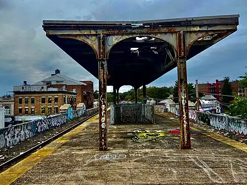 ![]() The abandoned station canopy viewed in October 2020. | |||||||||||