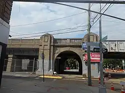 In 1911, New York City and the Long Island Rail Road began negotiating the elimination of numerous at-grade crossings within Queens.[5][6] In 1917, the LIRR finalized the grade crossing elimination project plans for the Montauk Branch in the Richmond Hill area, which would construct a new elevated station between Park Street (today's Hillside Avenue) and Lefferts Avenue (now Lefferts Boulevard).[7] During the project, the wooden station was temporarily relocated.[6] The current station opened in 1923.[1] The project eliminated numerous at-grade crossings in the vicinity of the station, including those at St. Anne Avenue (now 84th Avenue), Ashland Avenue (now 85th Avenue), Park Street, the intersection of Jamaica and Lefferts Avenue, and Ridgewood Avenue (now 89th Avenue). It also extended the roads adjacent to the right-of-way then known as Railroad Avenue (now Babbage Street and Bessemer Street) east to Lefferts Avenue.[5][7][8]
