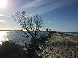 Near its entrance to the Pacific Ocean, the sheltered estuary of the river provides several sandy beaches and opportunities for recreational activities including swimming, sun bathing, yachting, fishing and dog walking.[9] It is also home to the Richmond River Sailing & Rowing Club,[10] and provides access to the Ballina trawler harbour which is situated just off the river estuary, where the river is joined by Fishery Creek.[11] One small area of residential canal estate development, the Ballina Quays, extends the available river frontage for housing so that each can then have individual moorings as desired, set back from the remainder of the river frontage.[12]