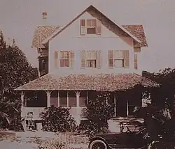 Constructors of Henry Flagler's hotels began building the Riddle House on July 1, 1905, using leftover wood.[1][2] Originally located at 327 Acacia Street in West Palm Beach, the house was nicknamed "the painted lady", because of its bright colors.[1] However, the dwelling would officially be known as "Gatekeeper's Cottage" early on because it served as the residence of the keeper of Woodlawn Cemetery, located just across Dixie Highway.[2] The house also originally served as a funeral parlor.[3] In 1914, Gatekeeper's Cottage became "City House" after being purchased by the West Palm Beach city government.[2]
