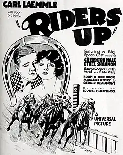 Riders Up is a 1924 American silent drama film directed by Irving Cummings and starring Creighton Hale, George Cooper, and Kate Price.[1][2]