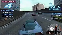 Ridge Racer, released in Japan as Ridge Racers[a], is a 2004 racing video game developed and published by Namco for the PlayStation Portable. An installment in the Ridge Racer series, it was released as a global launch title for the system, on 12 December 2004 in Japan and overseas in 2005. Ridge Racer has been described as a 'compilation' of the series, featuring tracks, cars and remixed soundtrack from previous titles of the 1990s.[2] Gameplay-wise, it marked the change from the "classic" style last seen in Ridge Racer V to the new drifting mechanic and nitrous boost that the series would incorporate from there on, including on Ridge Racer 6 and Ridge Racer 7.[3]