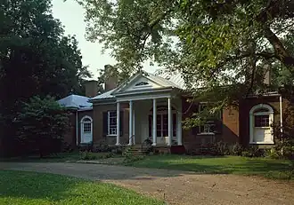 It is a one-story brick house with brick laid in Flemish bond. Its design includes "three principal masses or pavilions" each "surmounted by a hipped roof. It has a tetrastyle Doric portico which was admired by architectural critic Rexford Newcomb in his book Architecture In Old Kentucky.[2]