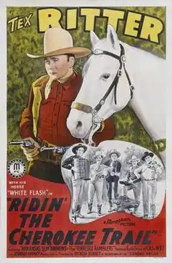 Ridin' the Cherokee Trail is a 1941 American western film directed by Spencer Gordon Bennet and written by Edmond Kelso. The film stars Tex Ritter, Slim Andrews, Forrest Taylor, Betty Miles, Jack Roper and Fred Burns. The film was released on February 25, 1941, by Monogram Pictures.[1][2][3]