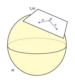 Let be a smooth manifold. For each point , there is an associated vector space called the tangent space of at . Vectors in are thought of as the vectors tangent to at .