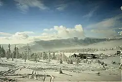 On both sides of the border, large areas of the mountains are designated national parks (Krkonoše National Park in the Czech Republic and Karkonosze National Park in Poland),[1] and these together comprise the Krkonoše/Karkonosze Transboundary Biosphere Reserve under the UNESCO Man and the Biosphere Programme.[2] The source of the River Elbe is within the Giant Mountains. The range has a number of major ski resorts, and is a popular destination for tourists engaging in downhill and cross-country skiing, hiking, cycling and other activities.
