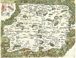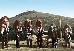 Since the Middle Ages, a state border has been established in the Giant Mountains, first between Poland and Bohemia, then between the Polish Duchy of Jawor and Bohemia, between Prussia and Austria, between Germany and Czechoslovakia, between Poland and Czechoslovakia, and then between Poland and the Czech Republic.[10] Apart from minor adjustments, the boundary has survived unchanged to this day.[11] It is disputed whether the Polish ruler Bolesław III Wrymouth crossed the Giant Mountains during his reprisal campaign against Bohemia in 1110.[11] Until the establishment of Poland in the 10th-11th century the mountain range and its foothills were unpopulated,[12] with deep, impenetrable forests. The Polish part was administratively part of the Wleń castellany.[12] The first traces of human settlements probably appeared in the Duchy of Bohemia near two provincial paths between Bohemia and Poland in the 12th century. The town of Jelenia Góra and probably also Kowary existed nearby already in the 12th century, however, the oldest villages on the foothills on the Polish side were founded in the 13th century.[11] Among the first native inhabitants were wood cutters, charcoal burners and hunters, and the first immigrants were gold prospectors.[13]