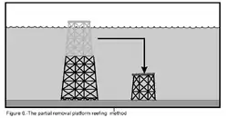 - Partial Removal: Remove the top portion of the submerged platform and either remove to the shore for salvage or place it on the sea floor nearby or at another site.[11] Partial removal can result in a loss of the shell mound community and fish that live in the top section but the rest (the majority) of the habitat remains intact.[16]
