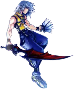 Riku is a childhood friend and rival of Sora, who lives with him and Kairi on Destiny Islands.[12][13] In the original game, where he is fifteen years old, when the Heartless invade Destiny Islands, Riku immerses himself in darkness to discover new worlds beyond his home. Upon arriving at Hollow Bastion, Riku is manipulated by Maleficent into aiding in her plans for world conquest in exchange for knowledge to restore Kairi's missing heart. He comes to wield the Soul Eater, a manifestation of the darkness in his heart, and is later revealed to be the rightful owner of Sora's Keyblade, which Terra bequeathed to him during the events of Birth by Sleep, when he was five years old; however, his reliance on the power of darkness caused the Keyblade to reject him in favor of Sora.[14] He is later tricked into allowing Xehanort's Heartless, Ansem, to possess his body. Following Ansem's defeat, Riku sacrifices himself to help Mickey Mouse close the door to Kingdom Hearts, stranding them on the other side.[15][16]