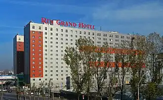 It was formerly known as RIN Grand Hotel, the fifth-largest hotel in Europe and the largest hotel in the European Union in terms of room count, having a total of 1,459 rooms.[1] The modern building has two underground floors and 16 overground floors and a constructed surface area of 115,000 m2 (1,240,000 sq ft).