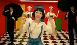 The music video was shot by director Takeshi Nakamura.[3] It features Kimura in a brightly painted room with many doors, dancing to the song along with four dancers, dressed in maid's outfits and suits and holding umbrellas. Through the video, more and more exotically dressed dancers enter the room and begin dancing.