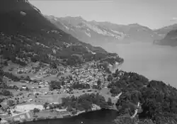In 1848, a road was built along the shores of Brienz Lake which connected Ringgenberg with the other towns of the area. In 1888 a harbor was built on the lake shore, allowing steamships to dock and helping tourists to visit the village's spa which opened in 1870. In 1916 the last leg of the Brünig railway line was completed, which passed through the village. Today the local economy is based on tourism, construction and mining at the municipal quarry. In addition, many residents commute to jobs in Interlaken.[4]