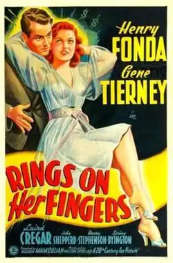 Rings on Her Fingers is a 1942 American comedy film directed by Rouben Mamoulian for 20th Century Studios and starring Henry Fonda and Gene Tierney.[2][3]