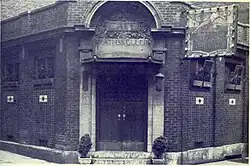 The bar first opened in 1897 as the Board of Trade Saloon, named for the nearby Columbus Board of Trade Building (no longer extant).[3] The original building caught fire and was destroyed in 1909;[5] the cause of the fire was unknown. In 1910, the owner E. Mithoff Nicholas rebuilt on the same site, hiring Carl Howell of Columbus-based firm Howell & Thomas.[6] Howell was previously part of the prominent Yost & Packard firm, and had joined with James Thomas in 1908.[7][8] The architectural design was unusual for the time, especially for such noted architects to design a bar.[3] The new bar was named the Chamber of Commerce Cafe and Rathskeller, carved in stone above the doorway.[5]