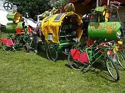 As well as being powered by bicycle, the system itself is moved around using specially converted bicycles.[1] Rinky Dink is an example of how green electricity can be generated and used to power things.