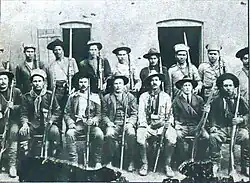 Honório Lemes ridiculed Juarez Távora for being a bad horse rider.[58] War on horseback, still important in a time of incipient motorization, was well understood by the Rio Grande do Sul irregulars.[54] Both sides appropriated all the horses they found on the way, increasing their mobility and denying the enemy mounts.[59] The clothing was typically gaucho in style, distinguished by the red scarves and ribbons, symbols of the revolution.[60] Many carried obsolete weapons: garruchas, shotguns and Comblain and Chassepot rifles. The Winchester rifle, more recent and widespread in rural areas, had less range and power.[61] This diversity of weapons made remuniciation very difficult.[62]