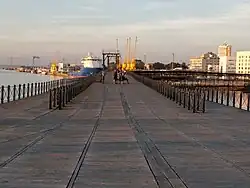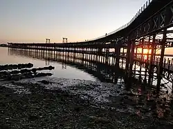 The Rio Tinto Pier (Spanish: Muelle de Rio Tinto) was a commercial pier formerly used for the trade of material from the mines of the Rio Tinto Company in the province of Huelva, Spain. It is situated on the River Odiel in the city of Huelva. An estimated 150 million tons of ore were shipped from the pier over its life. Closed in 1975, it is now a popular tourist attraction and fishing spot. The pier is 1165 meters long, although part of that is built on reclaimed marshland.[1]