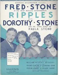 Ripples was a “new musical extravaganza” (musical comedy) in two acts with book by William Anthony McGuire, lyrics by Irving Caesar and Graham John, and music by Oscar Levant and Albert Sirmay. The show was produced by Charles Dillingham at the New Amsterdam Theatre, and opened February 11, 1930.[1]
