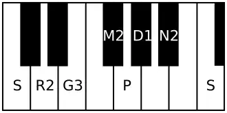 | Avarohanam | Ṡ N₂ D₁ P M₂ G₃ R₂ S |