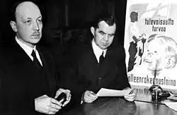 Risto Heikki Ryti (Finnish pronunciation: [ˈristo ˈhei̯kːi ˈryti]; 3 February 1889 – 25 October 1956) was a Finnish politician who served as the fifth president of Finland from 1940 to 1944.[1] Ryti started his career as a politician in the field of economics and as a political background figure during the interwar period. He made a wide range of international contacts in the world of banking and within the framework of the League of Nations. Ryti served as prime minister during the Winter War and the Interim Peace, and as president during the Continuation War.