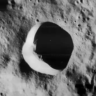 Rittenhouse is a small lunar impact crater that is located in the southern part of the Moon's far side. It lies amidst the western outer ramparts of the immense walled plain Schrödinger. To the west is the prominent crater Hale, just visible from the Earth along the lunar limb.