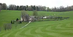 - The Rockstrohgut estate on a ridge above Arnoldshammer was probably built in 1777 as the widow's residence of the Rockstroh family, lords of the hammer. The late Baroque residential building of the four-sided farm has a high mansard roof, a narrow central risalit with a bay window and a spacious staircase. The neighboring orchard is surrounded by a high dry stone wall.[35]