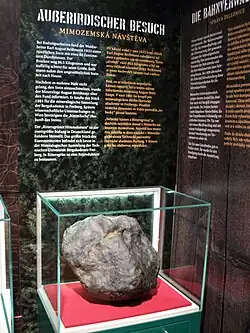 A meteorite found in the forest near Ehrenzipfel in 1833 attracted national attention. The forest worker Karl August Reißmann came across the 86.5 kg iron meteorite during clearing work and initially stored it in front of his house as it could not be melted in various ironworks.[31] Following a tip-off from Pfeilhammer's shift foreman, Freiberg mineralogy professor August Breithaupt traveled to Rittersgrün and bought the lump for the Freiberg Mining Academy's mineralogical collection. A plaster model of the meteorite is on display in the narrow-gauge railway museum.