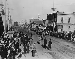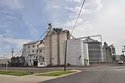 On June 6, 1888, a fire caused by a defective flue wiped out nearly all of the business section of town.[5] Ritzville had no fire department at the time, and its citizens were unable to combat the flames effectively. Rebuilding got underway quickly, resulting in the town's first brick building in 1889, built by the town's first mayor, N.H. Greene. It still stands and is currently part of the Ritzville Historic District.