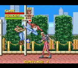 Jack Flak (Rick Norton in Japan) or "Oozie" Nelson (Douglas Bild in Japan) are selected in a one or two player mode, to defeat a plethora of enemies using punches, kicks and various weapons collected throughout the course of the game. Jack Flak is the hero who is out to rescue his girlfriend Heather, with the flying kick and the back drop as his specialty attacks. Oswald "Oozie" Nelson is a police officer who uses powerful professional wrestling moves.