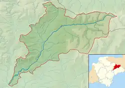 The River Culm flows through the Devon Redlands[2] in Devon, England and is the longest tributary of the River Exe.[3] It rises in the Blackdown Hills at a spring near RAF Culmhead in Somerset, and flows west through Hemyock, then Culmstock (in the Culm Valley) to Uffculme. The river turns south, through Cullompton (and alongside the M5 motorway), skirting the northern boundary of Killerton Park to join the River Exe on the north-western outskirts of Exeter.[4] The name of the river is thought to mean 'knot' or 'tie', in reference to the river's twists and loops.[5]