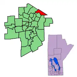 The riding was located on the northeast corner of the City of Winnipeg, bordered by the Red River to the west, the city limit, by Springfield to the north and east, and by the riding of Rossmere to the south.