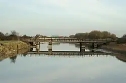 ![]() The Huntspill river crossed by a railway bridge and the M5 motorway | |