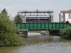 The Land Drainage Act 1930 passed responsibility for the management of the River Idle to the newly formed Trent River Catchment Board.[32] In 1938 they built the Trent-Idle sluice across the mouth of the Idle, next to the road bridge. It consisted of a single guillotine gate, 40 feet (12.2 m) wide and 20 feet (6.1 m) high which was regularly opened when tides were low to allow the Idle to discharge into the Trent by gravity. During periods when the Trent was in flood, the gate could not be opened, and the lower reaches of the Idle acted as a pond, with water backing up as far upstream as the junction with the River Ryton, and large areas of washland becoming inundated.[33]