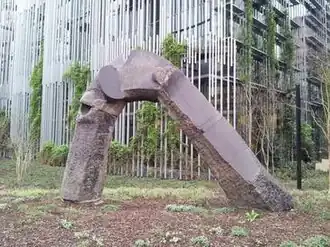River Legend, designed by American artist Dimitri Hadzi, is a basalt sculpture installed outside the Edith Green – Wendell Wyatt Federal Building in downtown Portland. It was commissioned for $65,000 in the 1970s by the General Services Administration's Art-in-Architecture Program and completed in September 1976.[1][2] The allegorical sculpture ("rivers") measures 10 feet (3.0 m) x 3 feet (0.91 m) x 13 feet (4.0 m), according to the Smithsonian Institution, or approximately 2 feet (0.61 m) x 14 feet (4.3 m) x 14 feet (4.3 m), according to the General Services Administration.[1][3] The 10,000-pound (4,500 kg) arch is made of Columbia Basin basalt and named after a natural crossing that spanned the Columbia River and allowed tribes to interact, according to Native American lore.[2][3]