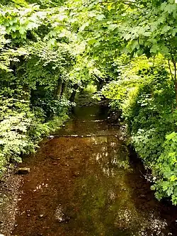 The bedrock of the catchment area largely consists of Devonian calcareous slates, grits and limestone.[1]