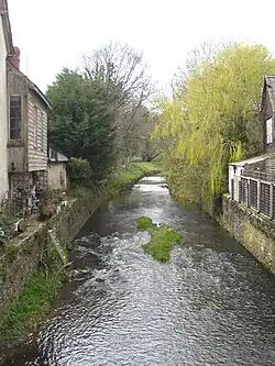 The River Strat is a river in the northernmost part of Cornwall in southwest England. The Strat flows for 12.7 miles (20.4 km) to the sea at Bude, having risen to the south of Kilkhampton. It flows initially in a generally southwesterly direction through Stratton to a meeting with its major tributary, the River Neet at Helebridge.[1] The river then turns abruptly to the north-northwest, parallel to the coast which it meets at Bude Haven. The Neet rises to the east of Week St Mary and flows north and northwest to its confluence with the Strat. Other tributaries rise to the west of Week St Mary. The section downstream from the vicinity of Helebridge is accompanied by the now disused Bude Canal. The rivers are home to trout, lamprey and eels.[2] The Strat is sometimes also referred to as the River Neet.[3][4] Older forms of the name of Stratton include Straetneat, one of the meanings of which may be the 'valley of the (river known as) Neat'.[5]