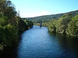 The River Oich is a short river that flows through the Great Glen in Scotland. It carries water from Loch Oich (to the SW) to Loch Ness (to the NE) and runs in parallel to a section of the Caledonian Canal for the whole of its 5.6 miles (9 km) length. The Great Glen Way runs between the two watercourses. The river's largest tributary is the Invigar Burn. The only significant settlement on the river is Fort Augustus at its NE end.[1]