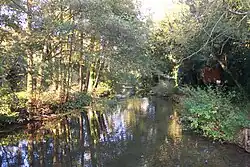 To the east of Bradfield the Pang is joined by the River Bourne and turns north to flow through the villages of Tidmarsh and Pangbourne, eventually entering the Thames between Whitchurch Lock and Whitchurch Bridge.[3]