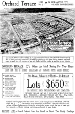 - ^ "Announcing the Opening of Orchard Terrace Unit No. 2". Sacramento Bee. 19 May 1948. Retrieved 8 March 2025.